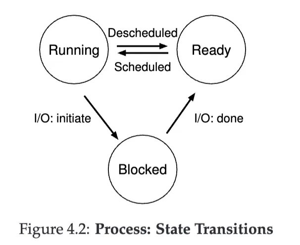 - Ready, meaning it’s ready to run, but the OS has chosen not to run it in that particular given moment because of some reason (like the scheduling policy);