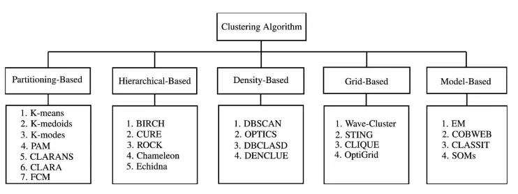 There are many categories of clustering algorithms.