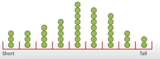 We can take an histogram to compute the probability of a certain measurement. For example the measurements in the middle are more probable than the one at the edges. If the data looks like a certain distribution, we can approximate it with that distribution for further measurements. For instance, the plot in the figure can be approximated with a normal distribution.