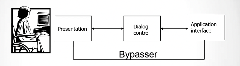 The bypasser is a module that allow the application component to bypass the dialogue control for performance reasons 1.