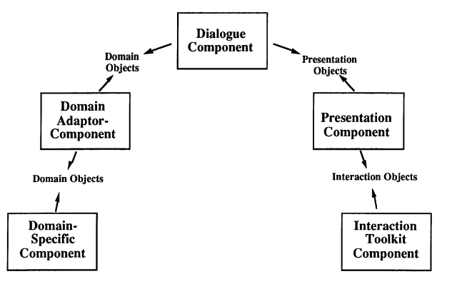 Developed in the early ’80s is the first UIMS proposed to separate the business logic and the presentation, by inserting a module called dialogue control in between, which translates the information between the presentation and the business logic using the division among lexicon, syntax and semantics: